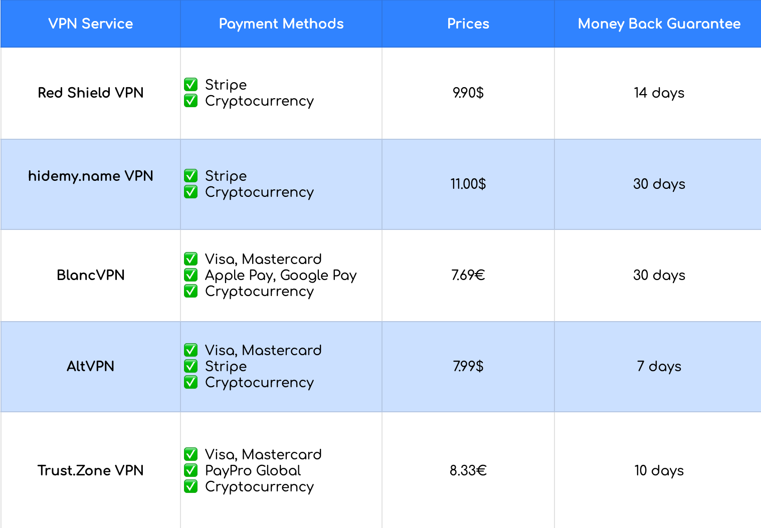 Accepts International Payments — Although the VPNs in the review operate in Russia, they accept international payments through PayPro, Stripe, or Cryptocurrency.