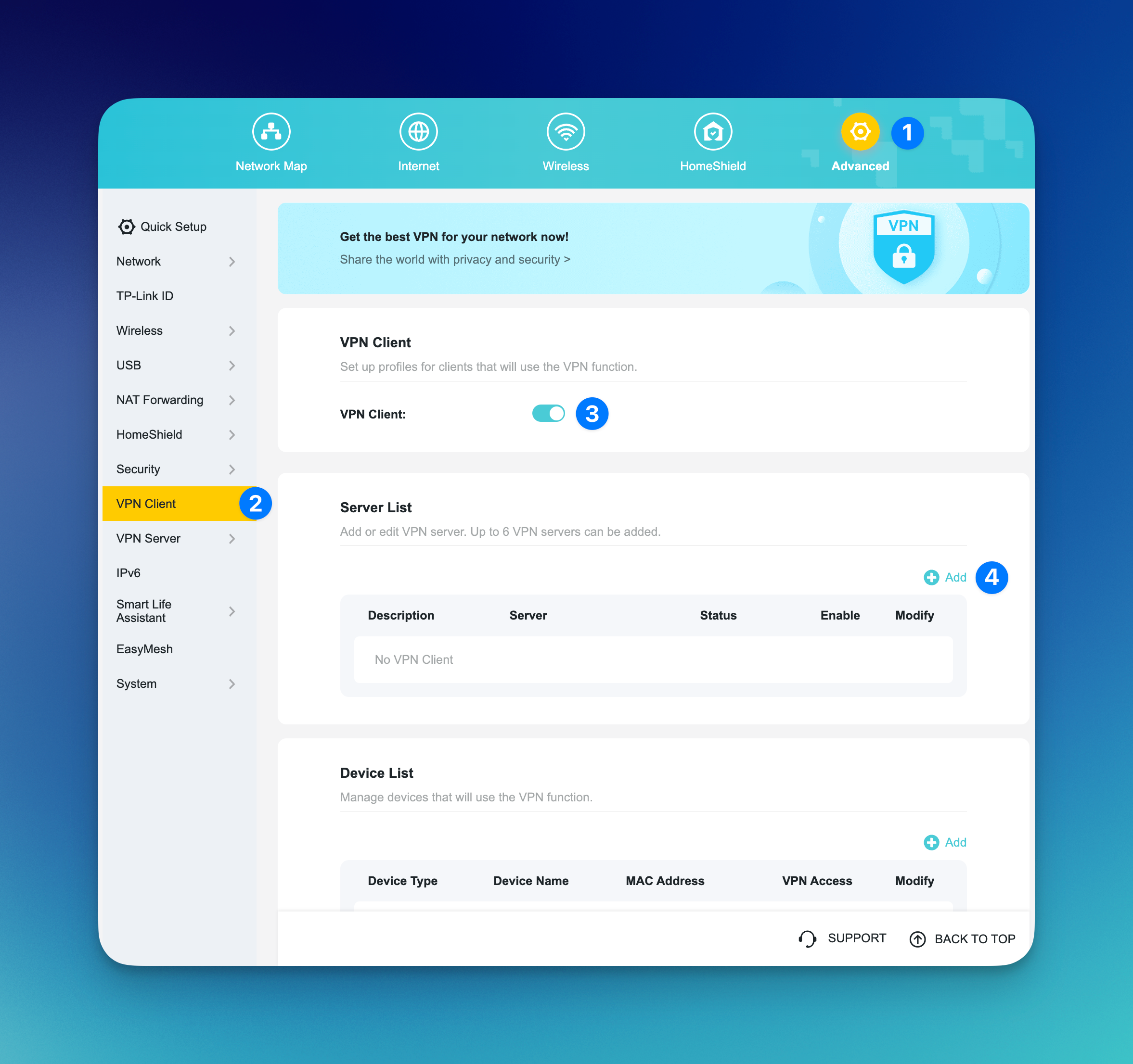 Select VPN Client. If this option is missing, your router does not support VPN.