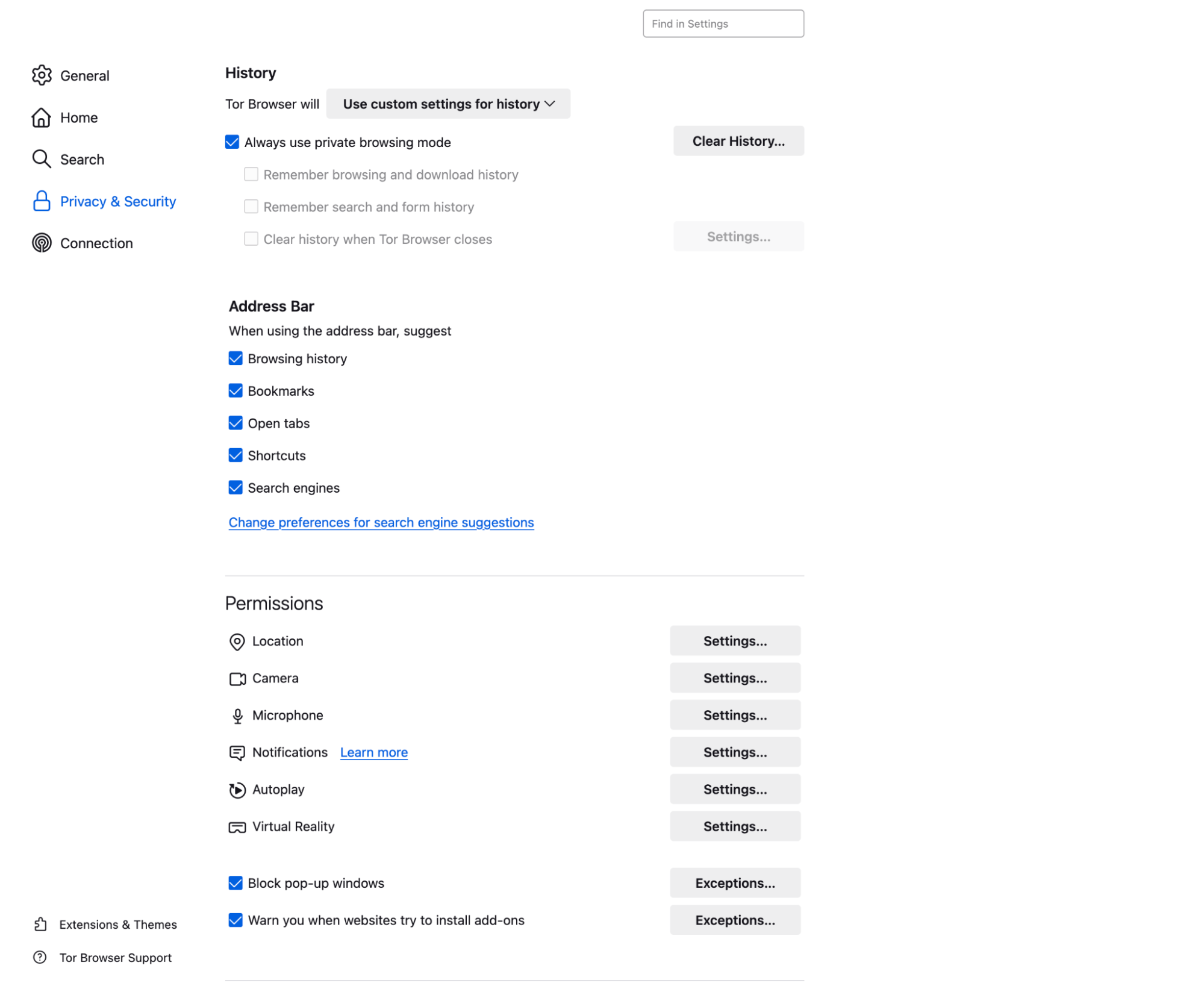 Tor Browser에서 "Use custom settings for history"를 선택합니다.
