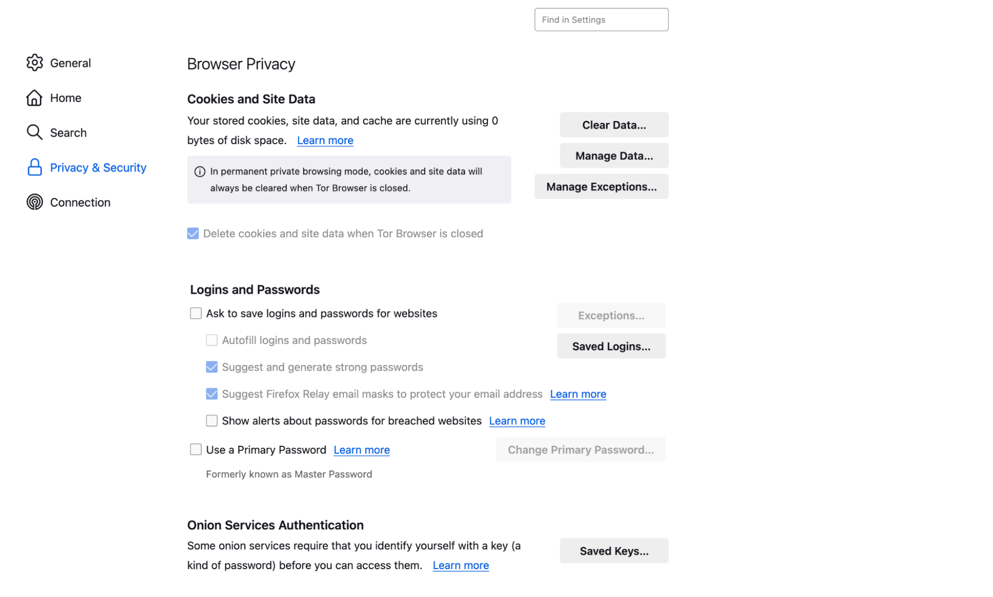 "Always use private browsing mode" 옵션을 체크하여 웹 서핑 기록이 브라우저에 저장되지 않도록 합니다.