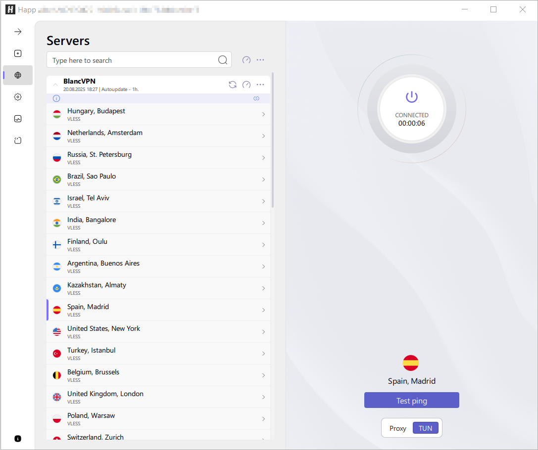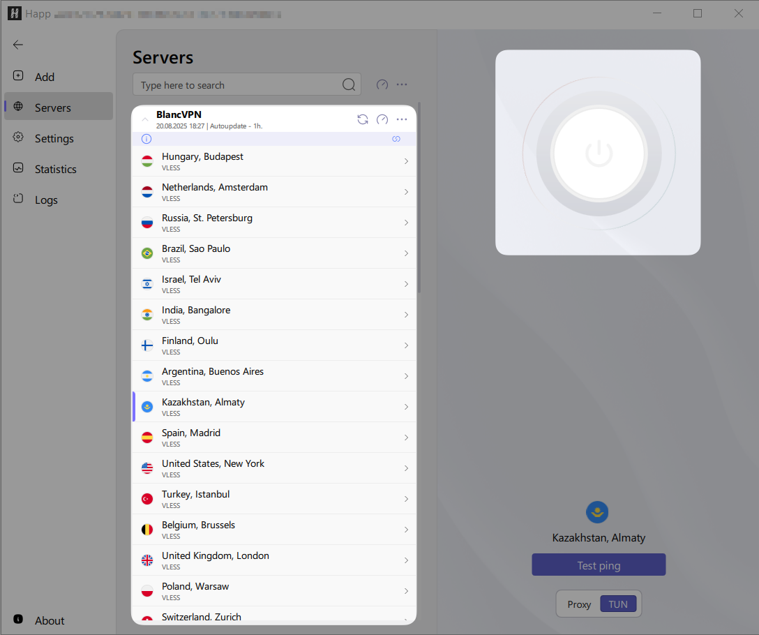 Windows 기기에서 Happ을 사용해 BlancVPN을 설정하려면 V2Ray 프로토콜 클라이언트와 액세스 키가 필요합니다.