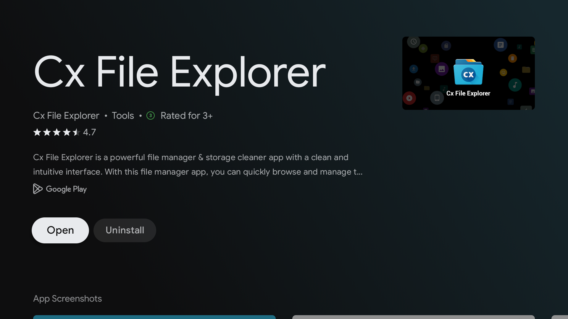 TV에 CX File Explorer 파일 관리자 앱을 설치합니다.