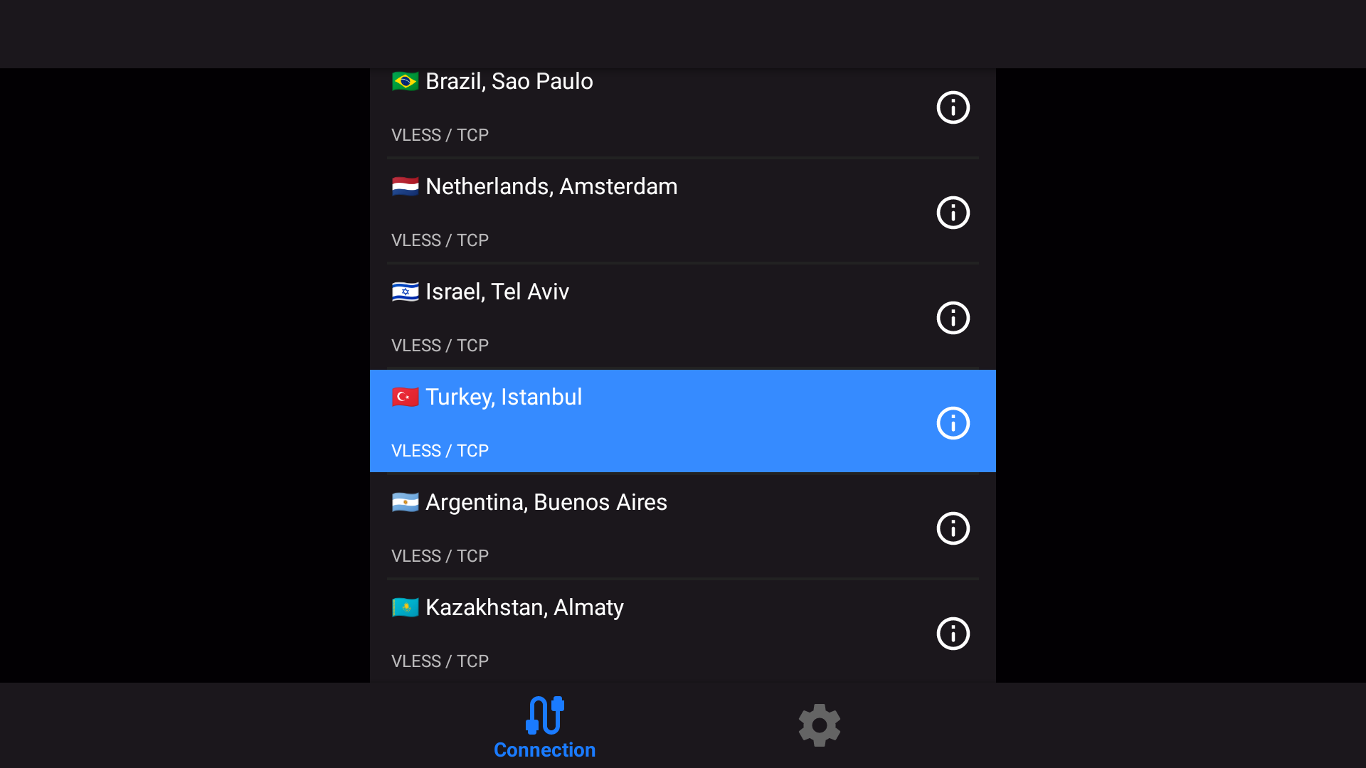 아래로 스크롤하여 원하는 서버 위치를 선택합니다.