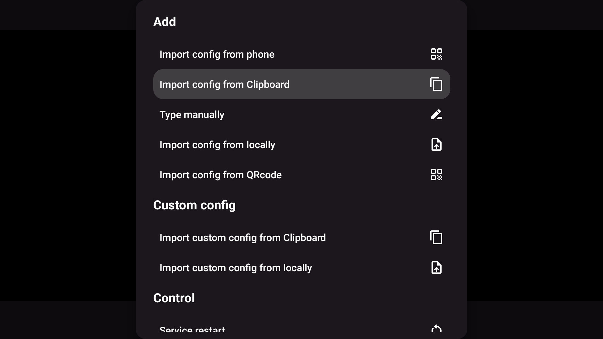 Add Config 섹션에서 Import from Clipboard를 선택합니다.